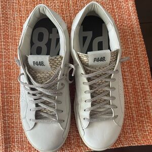 Chic P448 John line sneakers in white with a snakeskin detail under the laces. Worn only a couple times. Perfect for everyday style.