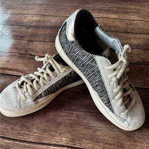 ⭐️ P448 Women’s Sneakers – Size 38 (US 8) – Black/White Suede with Gold Accents ⭐️