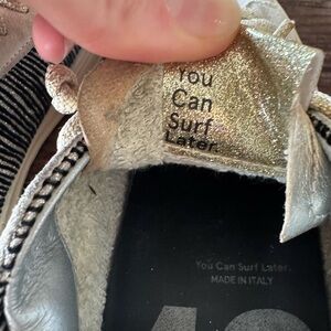 Trendy & fun ✨ These P448 Italian-made sneakers are the perfect mix of sporty and chic. Featuring suede + patterned sides, metallic gold heel and tongue accents, and glittery gold laces 🎉— they’re a standout pair whether you’re running errands or styling with a casual outfit 👟💃