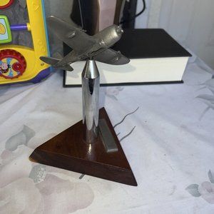 This P-47 Thunderbolt desktop model is a unique addition to any aviation enthusiast's collection. The model features a wood base, pewter and steel construction, and is a replica of the famed WWII aircraft.