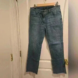 P7002 theory raw hemmed straight legged medium wash jeans size 28
