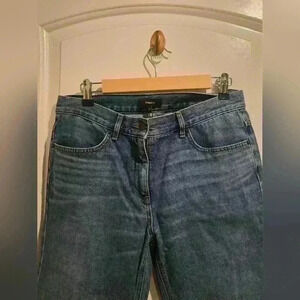 P7002 theory raw hemmed straight legged medium wash jeans size 28
