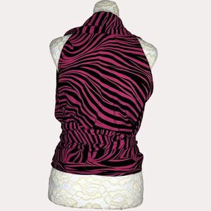 PA Pyong An Blouse Top Animal Print Tie Waist Pink Black 44 US L am