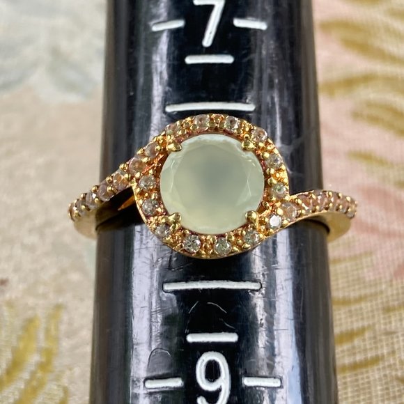 PA vermeil blue chalcedony ring with CZ gems
