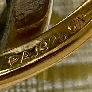 PA vermeil blue chalcedony ring with CZ gems along the sides. In very good condition, see photos. Rarely worn. About a size 8.