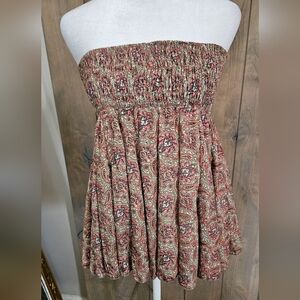PAANI Smocked Paisley Print Skirt/tube Top. Pink/sage Multi. Size Small NWOT