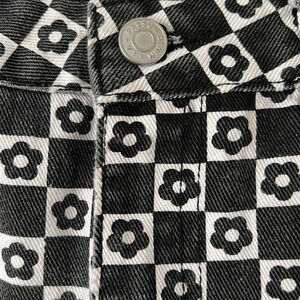 PAC SUN Roxanne Black and White Checkered Floral Denim Mini Skirt Size 26