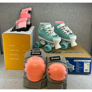 Pacer Scout ZTX Quad Indoor-Outdoor Roller Skates & Pads - Wintergreen- Youth 13
