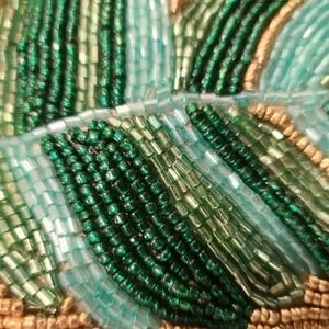 New with tags, Pacific Paradise GOLD Green Teal & Blue Beaded Tropical Palm Leaf Throw Pillow. 14"x14"