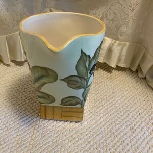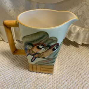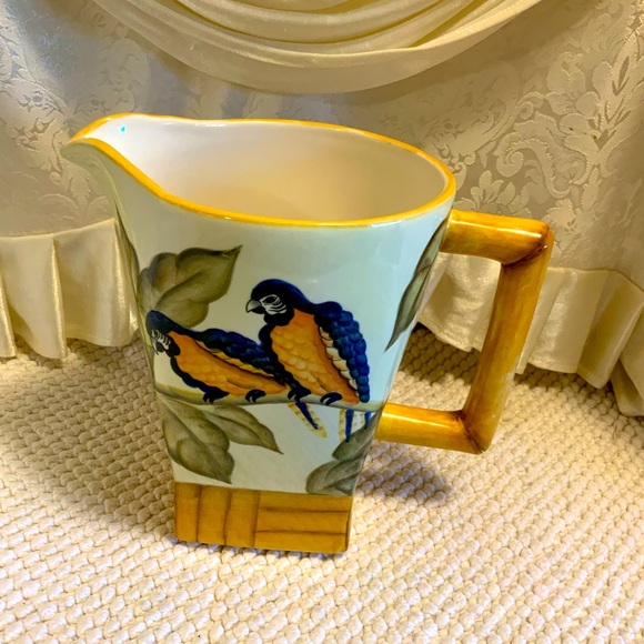 Pottery, tropical, bamboo parrot bird pitcher