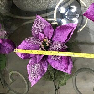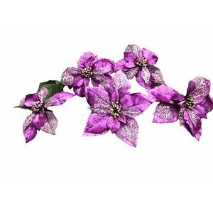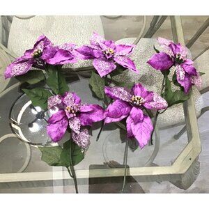 PACK OF 5 CHRISTMAS DECOR ARTIFICIAL FLOWERS 16" PURPLE POINSETTIAS