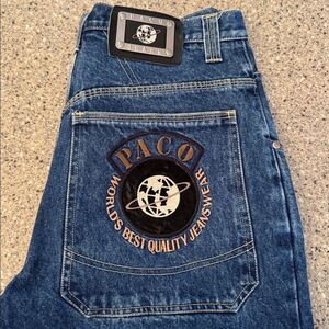 PACO JEANS CO Baggy Y2K Hip Hop Streetwear Globe Logo Embroidered Jeans