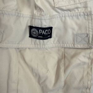 PACO Vintage Y2K Convertible Cargo Pants / Shorts Beige Zip Off Size 36 x 34. Excellent condition. See photos for details and unstretched measurements. View my closet to add other items and bundle to save with one shipping fee! Style 15460GO Light beige, zip off legs, cargo pants, carpenter, utility pants, military, work. Adjustable toggles on waist and ankle, pockets all over, PACO hits all over, casual, baggy relaxed, hip hop, street wear, tailgating, windbreaker, comfort