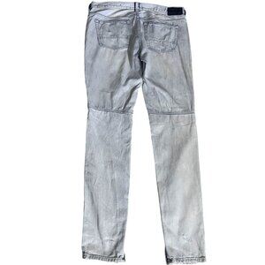 Light wash, heavy style. These PACSUN skinny jeans feature active stretch for all-day comfort and bold distressed detailing for streetwear edge. Ripped knees, frayed hems, and a striped patch make these a standout piece for casual fits. Pre-owned in excellent condition—no flaws, just flex.