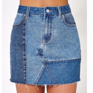 PACSUN Demin Jean Patchwork Skirt raw hem sz 25