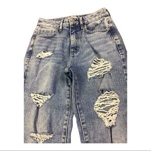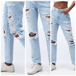 Achieve a cool and casual look in the Light Blue Mom Jeans by PacSun. These edgy mom jeans come in a light indigo wash and feature a high-rise fit with ripped details throughout