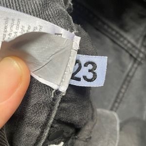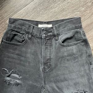 PACSUN High Rise Straight Black Wash Button Fly Raw Hem Knee Holes Jeans Size 23