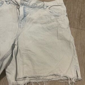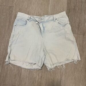 PacSun's blue jean shorts offer a trendy distressed look with a high-waisted fit and a raw, frayed hem. The light blue denim provides a casual, worn-in appearance, perfect for laid-back days. These shorts are a stylish addition to any wardrobe, combining comfort with a fashionable edge.
