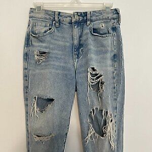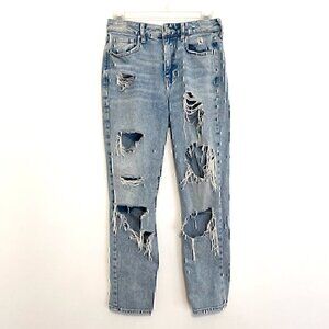 PACSUN Mom Jeans Light Wash Distressed Ripped High Waisted Cropped Crop Ankle 24