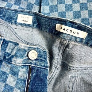 PACSUN Toby Slim Taper Vintage Men's Checkered Loose Jeans in size 29. Stylish checkered design with a comfortable fit, perfect for casual outings or relaxed wear. Elevate your wardrobe effortlessly!