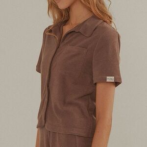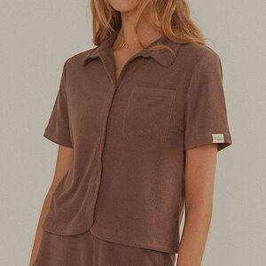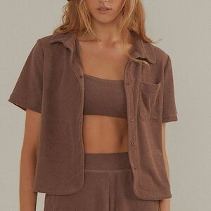 PACSUN Vacancy Supply Co. Top Holiday Terry Cloth Button Up Shirt Size 6