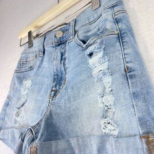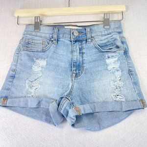 PACSUN Womens 0 Blue Light Wash Stretch Denim The Shortie Distressed Shorts