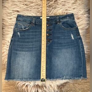 PACSUN women’s distressed button zipper blue jeans mini skirt