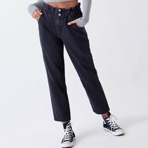 PACSUN adds a Femenine flair to your casual style With the cinched black Paperbag Mom Jeans