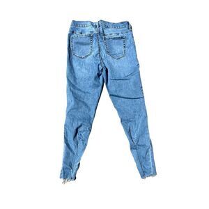 PAC SUN Light Wash Skinny Jeans W/ Rose Embroidery Size 28. There is stitching on the back of the jean from the calf to the ankle on each leg. This can be seen in the photos above