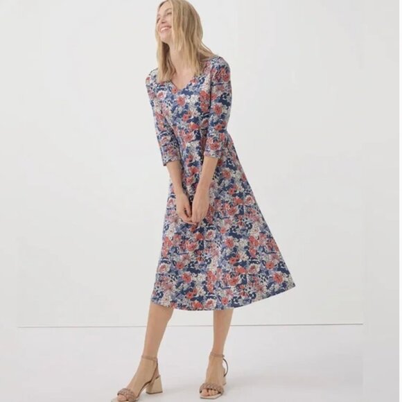 PACT Autumn Cosmos Floral Organic Cotton Fit & Flare Midi Party Dress Sz S