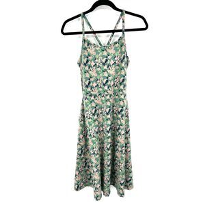 PACT Green Pink Floral Fit & Flare Racerback Summer Fall Midi Dress Size Large