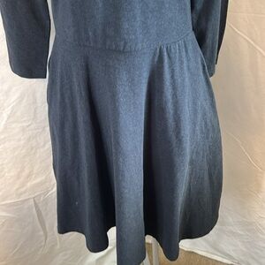 Pact sustainable fit and flare 95% organic cotton 3/4 sleeve dark gray dress made in India two side pockets, stretchy scoop-neck pull on comfy lovely dress size small checkout pics comment with any questions