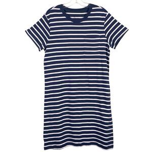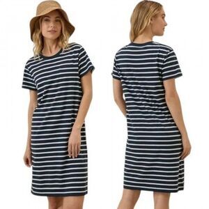 PACT Softspun Tee Dress Size M Navy Blue & White Stripes
