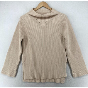 PACT Sweater Womens XS Organic Cotton Ribbed Funnel Neck Pullover Beige