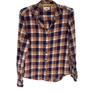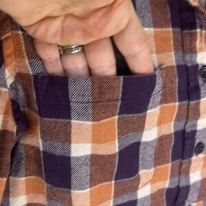 PACT Women’s Mila Purple Orange Plaid Button Down Flannel Size Small