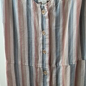 PACT Women’s Stucco Vertical Stripe Harbour Organic Cotton Midi Dress-Medium