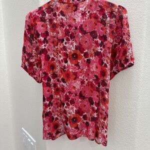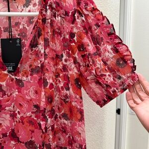 Paige floral short sleeve top! A little ruffle detail on the sleeves, tie neck or can leave open , beautiful pink floral, simi sheer material. Size Small. Never worn! Brand new! This season style! So cute! Bought two colors, never had a chance to wear this!