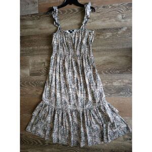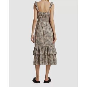 PAIGE 7363J78-6678 Women's Sz L Ecru Multi/Beige Gisella Floral Midi Dress