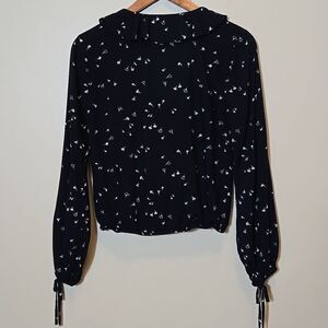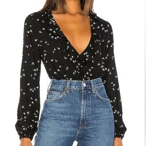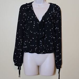 PAIGE Abelie Surplice Wrap Top XS Long Sleeve Black White Floral Rayon Ruffled