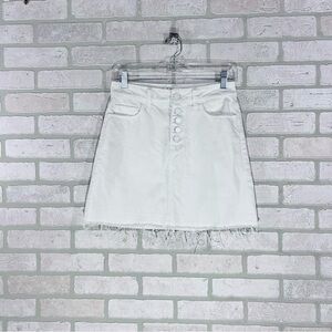PAIGE Aideen Raw Hem Denim Skirt in Crisp White Size 26