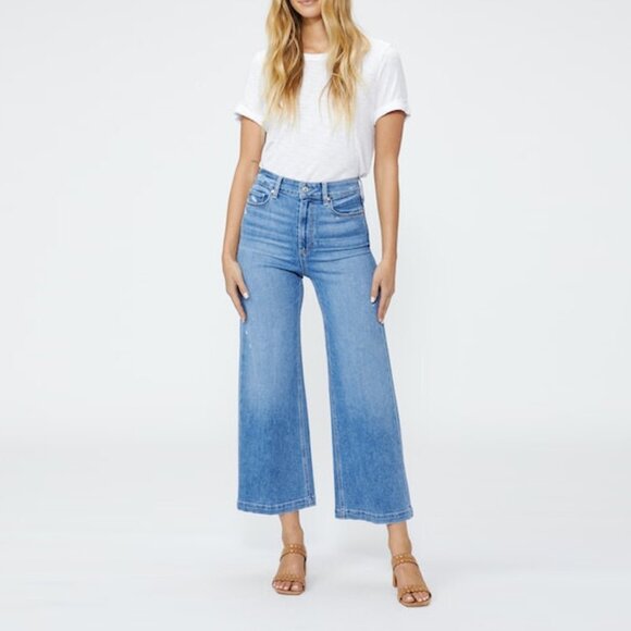 PAIGE Anessa High-Rise Crop Wide Leg Jeans In Say Anything Distressed Size 30