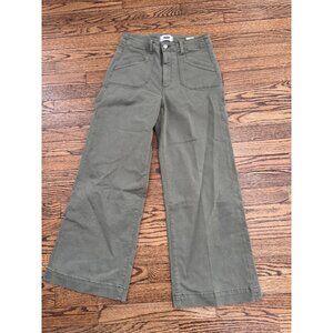 PAIGE Anessa Welt Utility Pocket Crop Wide Leg Pants Jeans Vintage Ivy Green Size 28