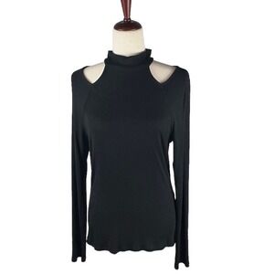 PAIGE BEATRIZ LONG SLEEVE RIBBED CUTOUT TOP IN BLACK NWOT WOMEN'S SIZE LARGE