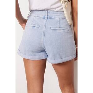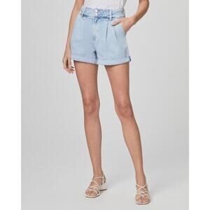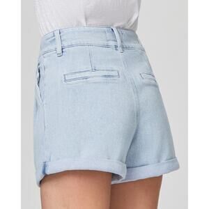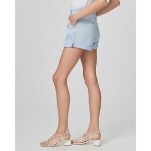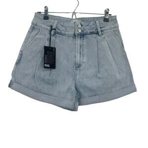 PAIGE Beth High Rise Cuffed Denim Shorts in Sherry Size 29 NWT. With the understanding that few things can take you from morning to midnight quite as effortlessly as a great pair of jeans, former fit model Paige Adams-Geller launched the first collection of PAIGE denim in 2004. Known for meticulous designs and artful washes that are exhaustively wear-tested to ensure fit and integrity, the California-based lifestyle brand creates denim and other wardrobe staples designed for modern living. Zip fly with button closure, four-pocket silhouette. Tonal stitching, silver-tone logo hardware, belt loops. Faded wash. Pleated front, cuffed hems. Imported. 93% cotton/5% polyester/2% spandex. Machine wash.