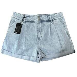 PAIGE Beth Pleated High Rise Waist Shorts Sherry Light Wash Cuffed Denim NWT 33