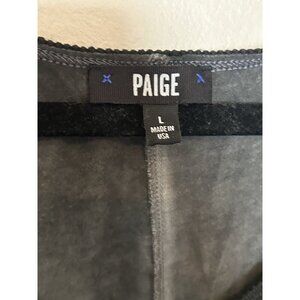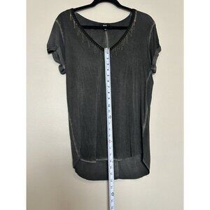 PAIGE Black Gunmetal Tshirt Short Sleeve Top With Metal Fringe V Neck Size Large