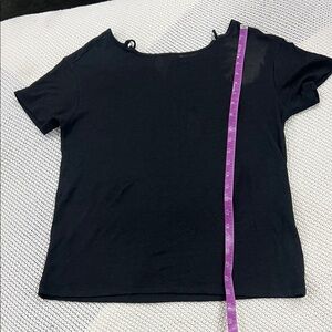Chic black short sleeve top. Comfortable and versatile. Ideal for casual wear.