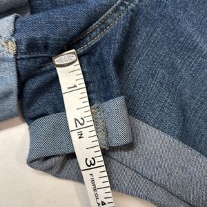 Stylish blue jean shorts. Classic design with rolled cuffs. Perfect for casual wear.