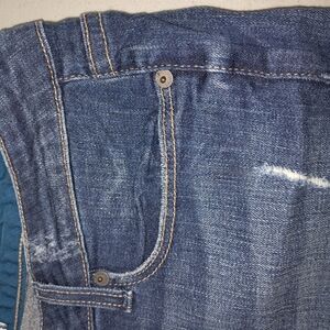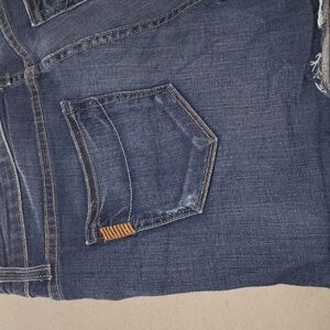 These PAIGE jean shorts in a classic blue hue feature a stylish distressed hem, offering a relaxed and casual vibe. Perfect for summer outings, they showcase a medium-dark wash with subtle fading for a worn-in look.