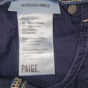 Experience the perfect blend of style and comfort with PAIGE's blue skinny jeans. These jeans feature a sleek, tapered silhouette and a modern denim finish with subtle fading and whiskering effects. Crafted from medium-weight denim with a hint of stretch, they offer a flattering fit for any occasion.